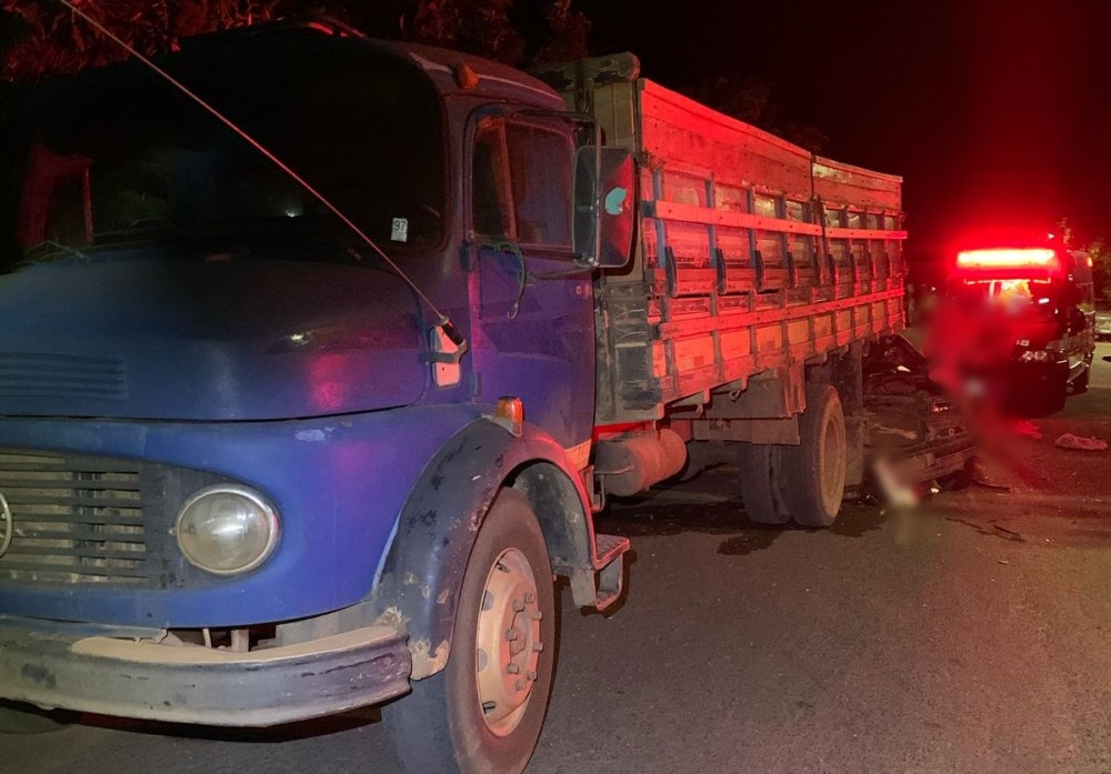 Motorista fica ferido após colisão entre carro e caminhão em Campos Altos